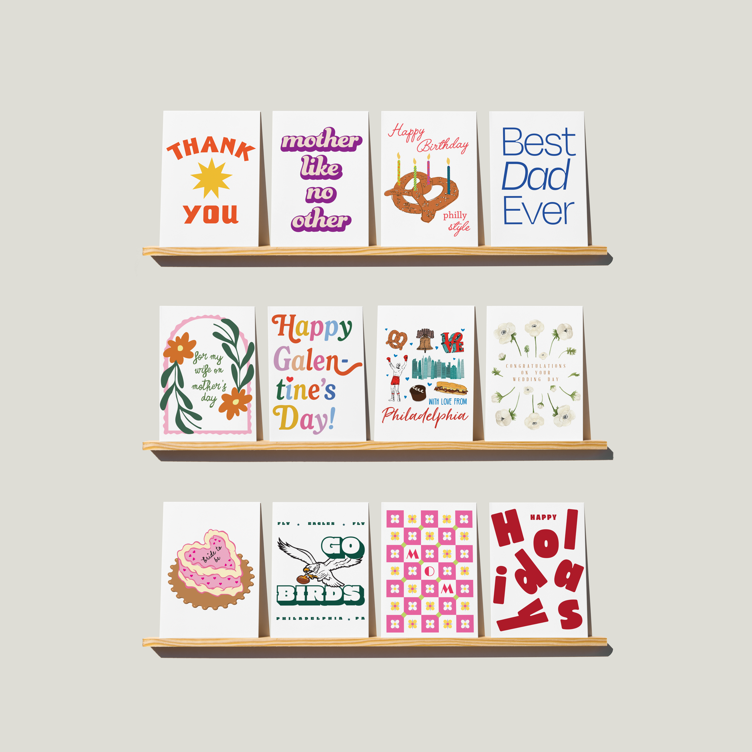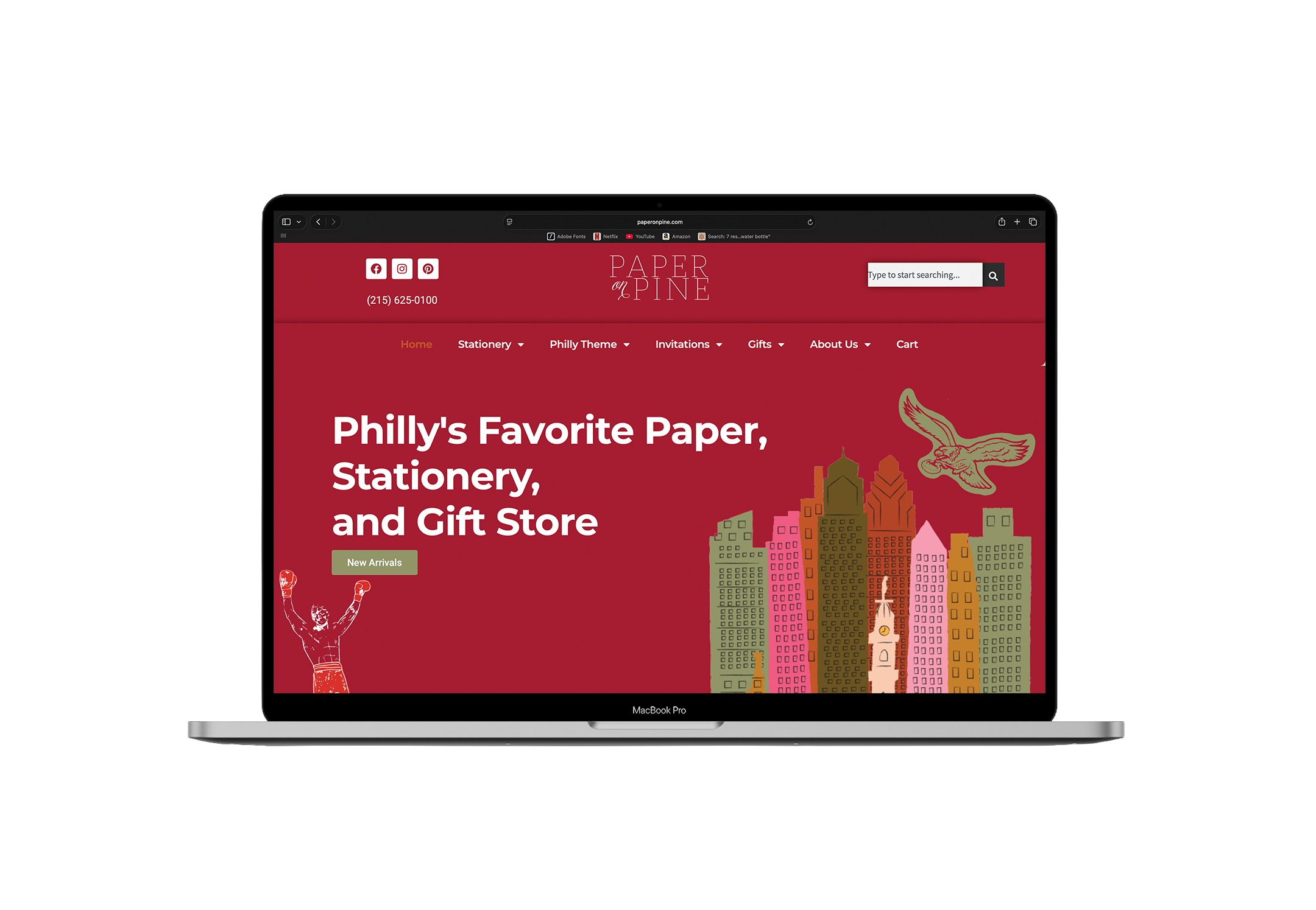 Working at Paper On Pine, Philadelphia’s premier custom invitation and stationery store, I applied my passion for design and attention to detail across every piece. I collaborated on custom wedding invitation suites, supported print production with local Philadelphia printers to ensure results, and helped develop the store’s own design language. The shop’s popular Philly Originals products provided a canvas for customer touch points and brand expansion. Throughout, I embraced the company’s ethos: “we love a party and gorgeous paper!”, making thoughtful, intentional choices that balance professional polish with friendly warmth. These efforts helped Paper On Pine craft award-winning invitations, culminating in Metro Philly’s Best Invitations 2024.